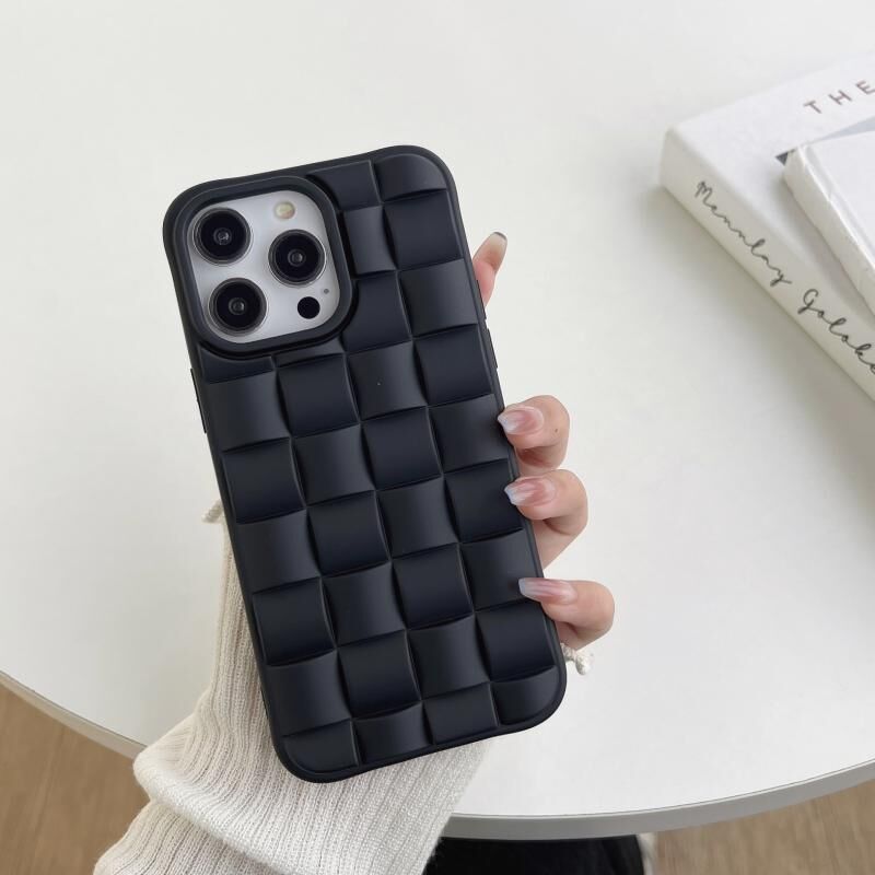 For iPhone 14 Plus 3D Cube Weave Texture Skin Feel Phone Case(Black)