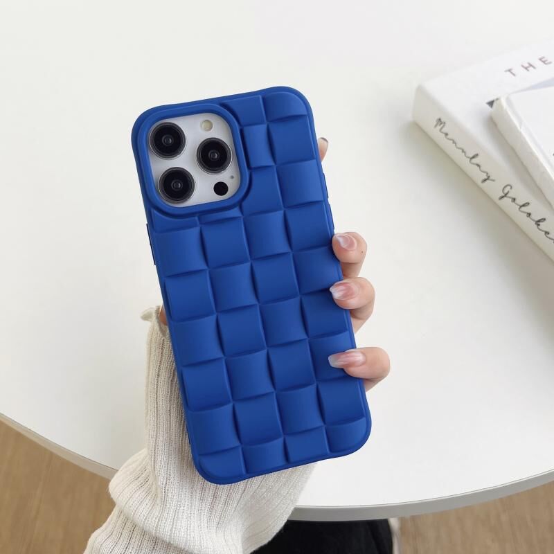 For iPhone 14 Plus 3D Cube Weave Texture Skin Feel Phone Case(Dark Blue)