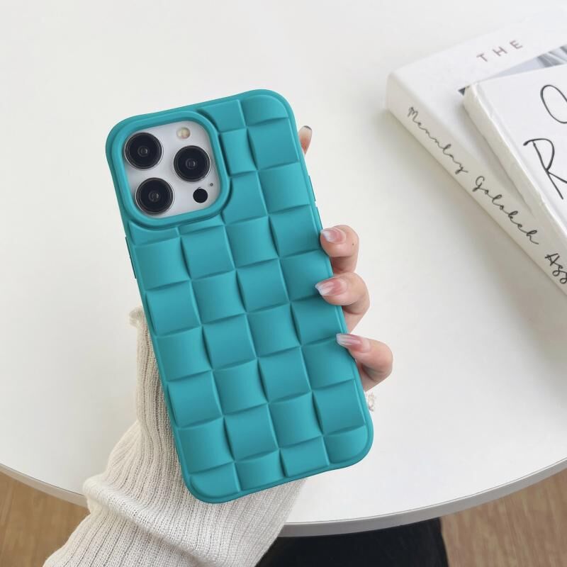 For iPhone 14 Plus 3D Cube Weave Texture Skin Feel Phone Case(Dark Green)