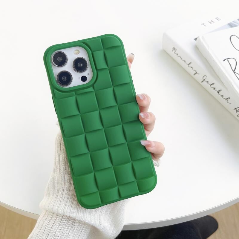 For iPhone 14 Plus 3D Cube Weave Texture Skin Feel Phone Case(Green)