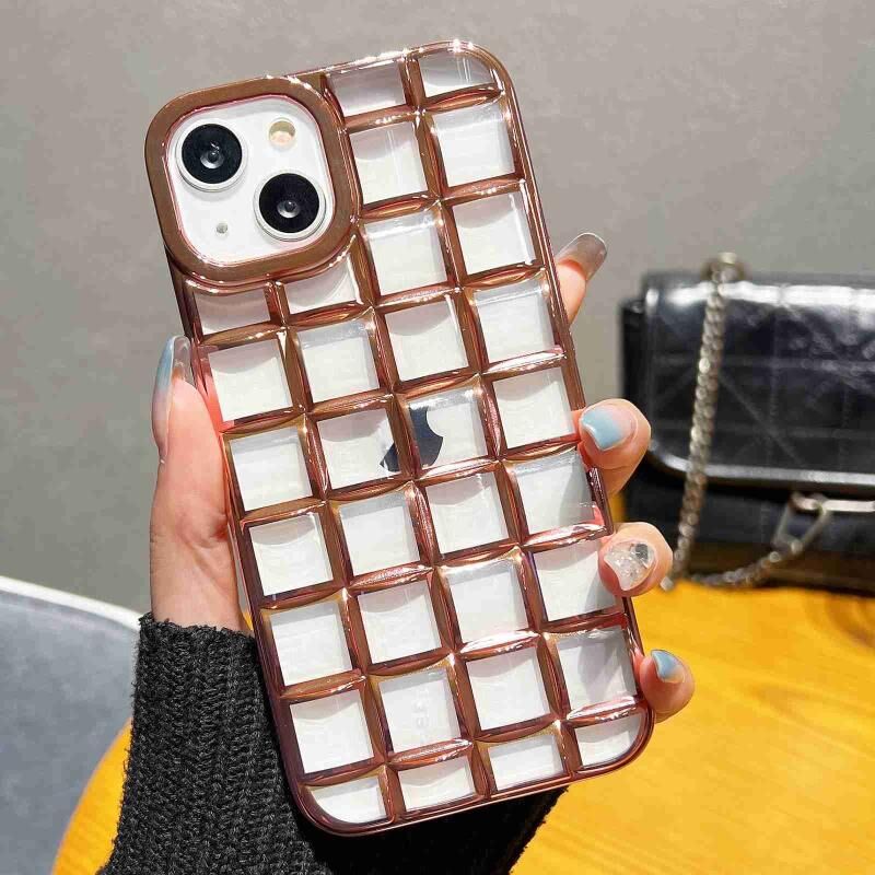 Θήκη κινητού τηλεφώνου 3D Grid για iPhone 14 Plus (Χρυσό)