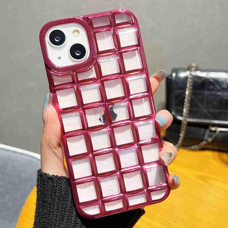 Θήκη κινητού τηλεφώνου 3D Grid για iPhone 14 Plus (Χρυσό)