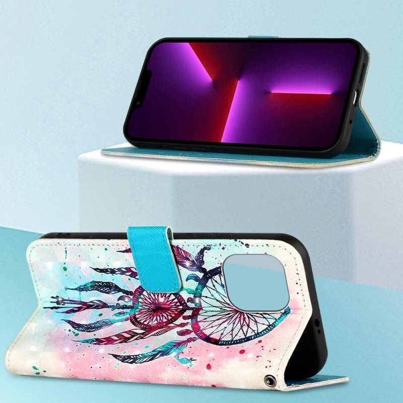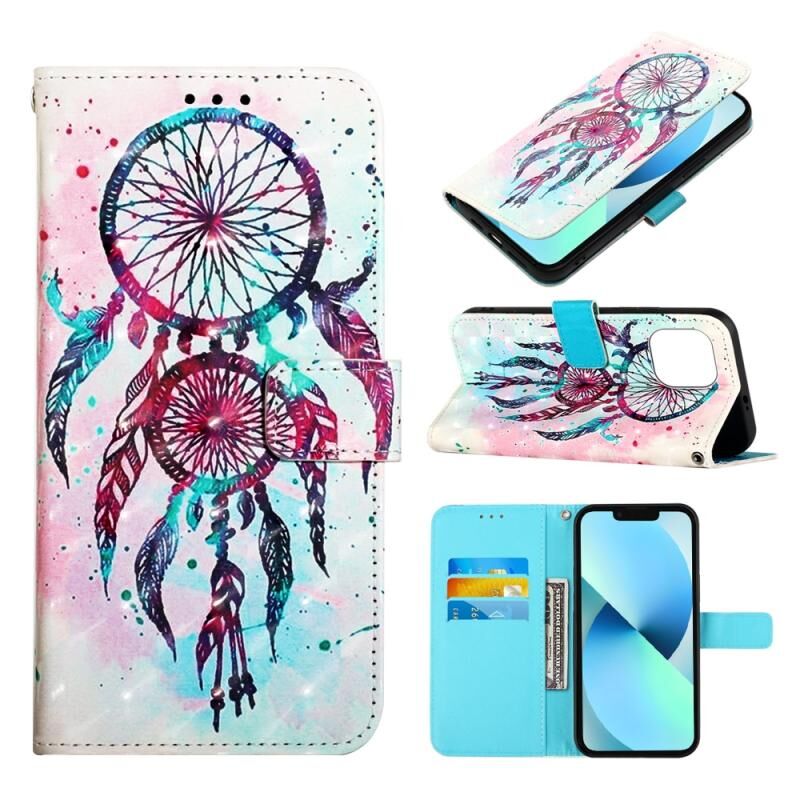 Θήκη τηλεφώνου από δέρμα με οριζόντιο άνοιγμα και τρισδιάστατη ζωγραφική για iPhone 14 Plus (Χρώμα: Αιωρούμενες καμπάνες)