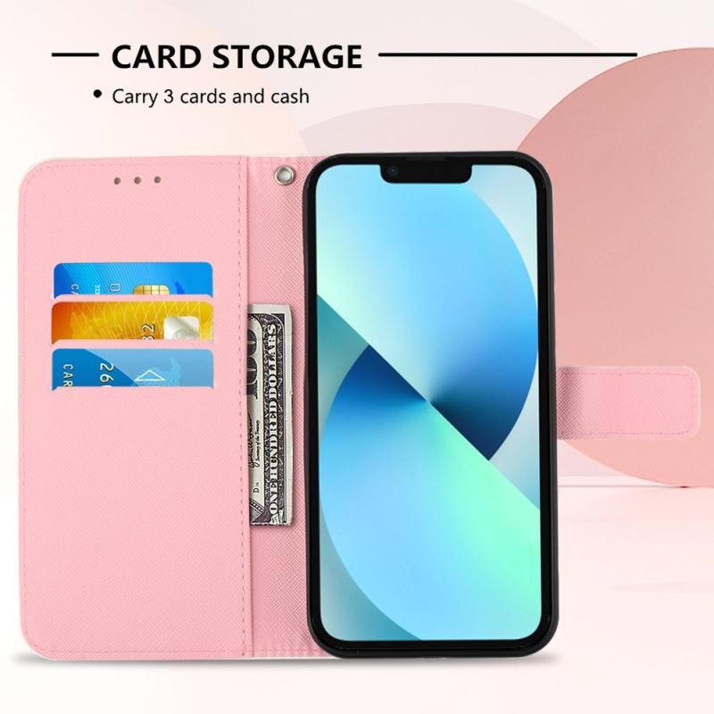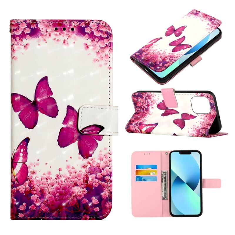 Θήκη τηλεφώνου δερμάτινη με οριζόντιο άνοιγμα και 3D ζωγραφική για iPhone 14 Plus (Ροζ Πεταλούδα)