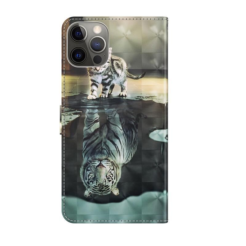 Θήκη τηλεφώνου από δέρμα με σχέδιο 3D ζωγραφικής και αναδιπλούμενο μηχανισμό για iPhone 14 Plus (Γάτα Τίγρης)
