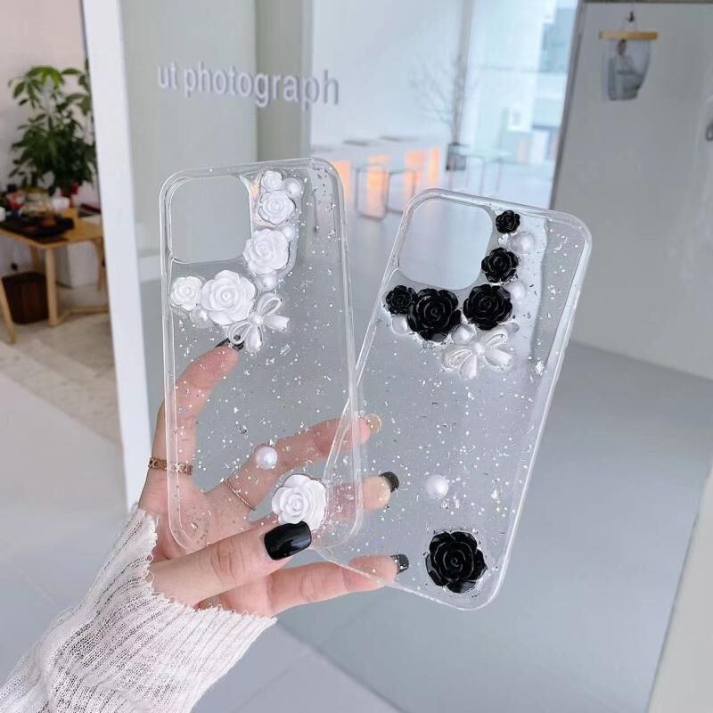 Θήκη τηλεφώνου για iPhone 14 Plus 3D Πέρλα Φιόγκος Ρόζ Γκλίτερ Εποξειδική TPU (Μαύρο)