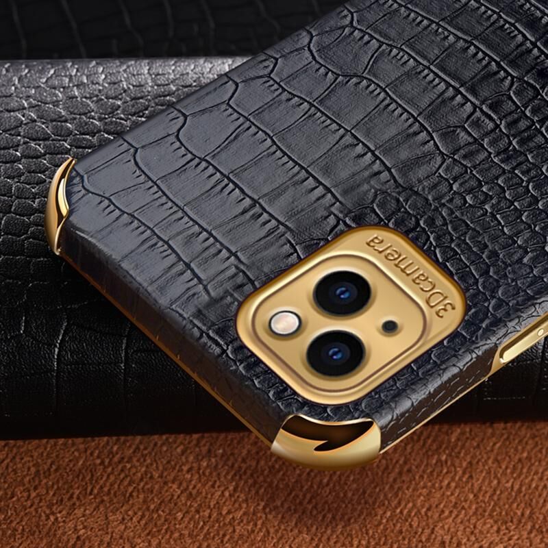 Θήκη τηλεφώνου με υφή κροκόδειλου και ηλεκτρολυτική επίστρωση 6D για iPhone 14 Plus με βάση στήριξης (Μαύρο)
