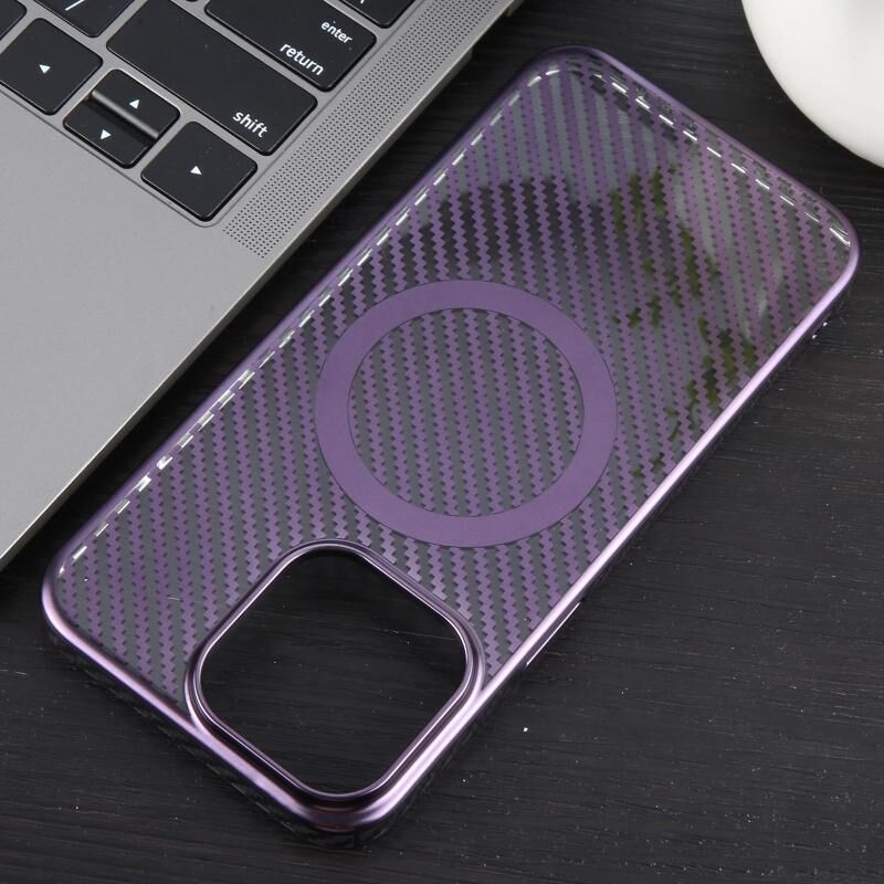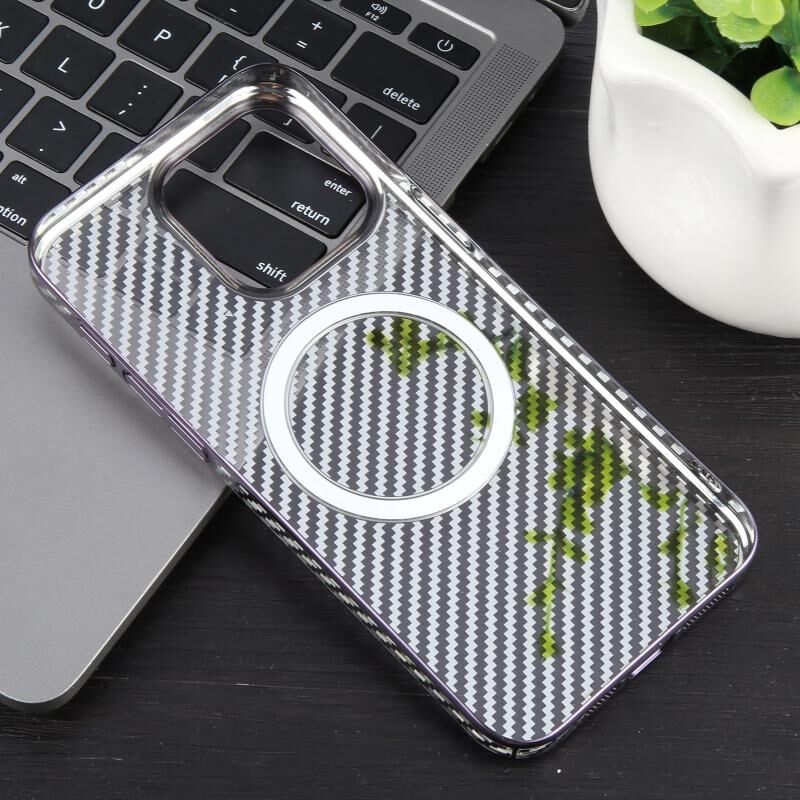 Θήκη τηλεφώνου για iPhone 14 Plus με επικάλυψη ανθρακονήματος 6D, διαφανής, με MagSafe, από PC (Ασημί Αστρικό Φως)