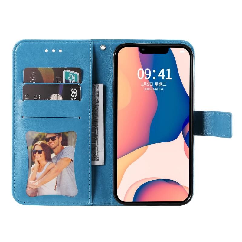 Θήκη δερμάτινη με ανάγλυφα 7 πέταλα λουλουδιών για iPhone 14 Plus (Χρυσό Ροζ)