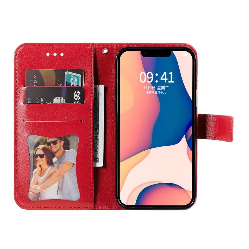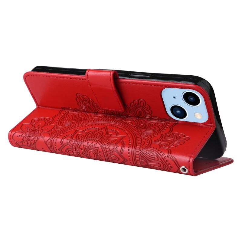 Θήκη δερμάτινη με ανάγλυφα 7 πέταλα λουλουδιών για iPhone 14 Plus (Χρυσό Ροζ)