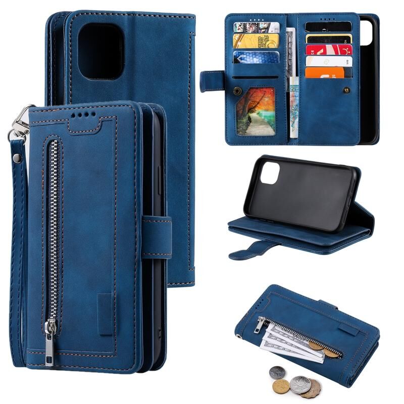 Θήκη δέρματος με φερμουάρ και 9 θέσεις για κάρτες για iPhone 14 Plus (Μαύρο)