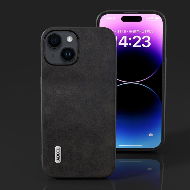 Θήκη τηλεφώνου για iPhone 14 Plus ABEEL Διχρωμίας με Υφή Δέρματος Αγελής (Κόκκινο)