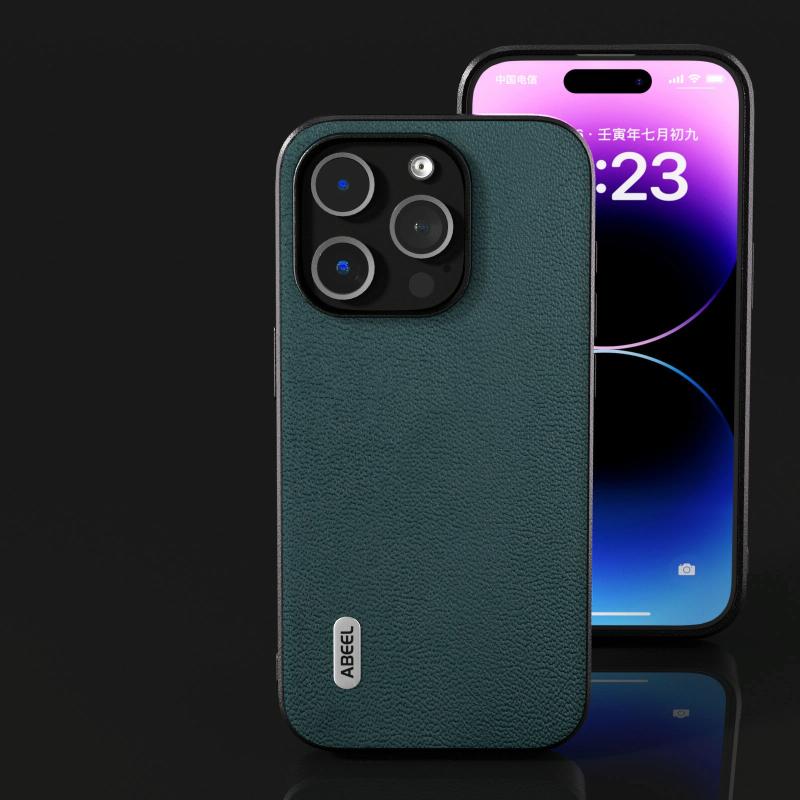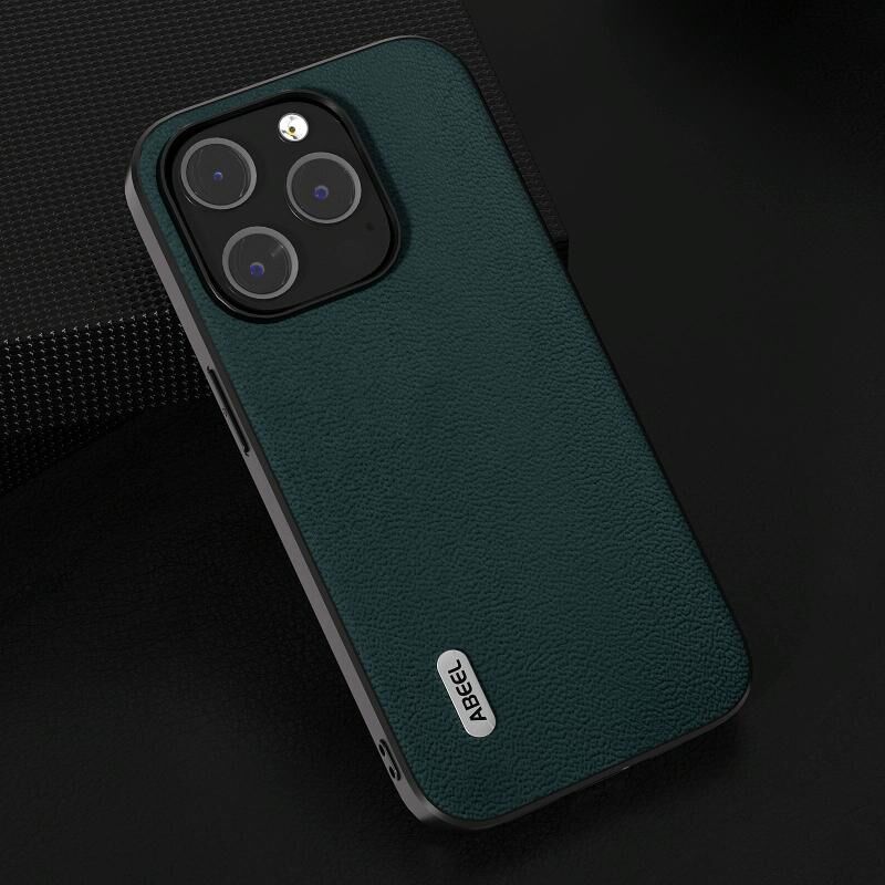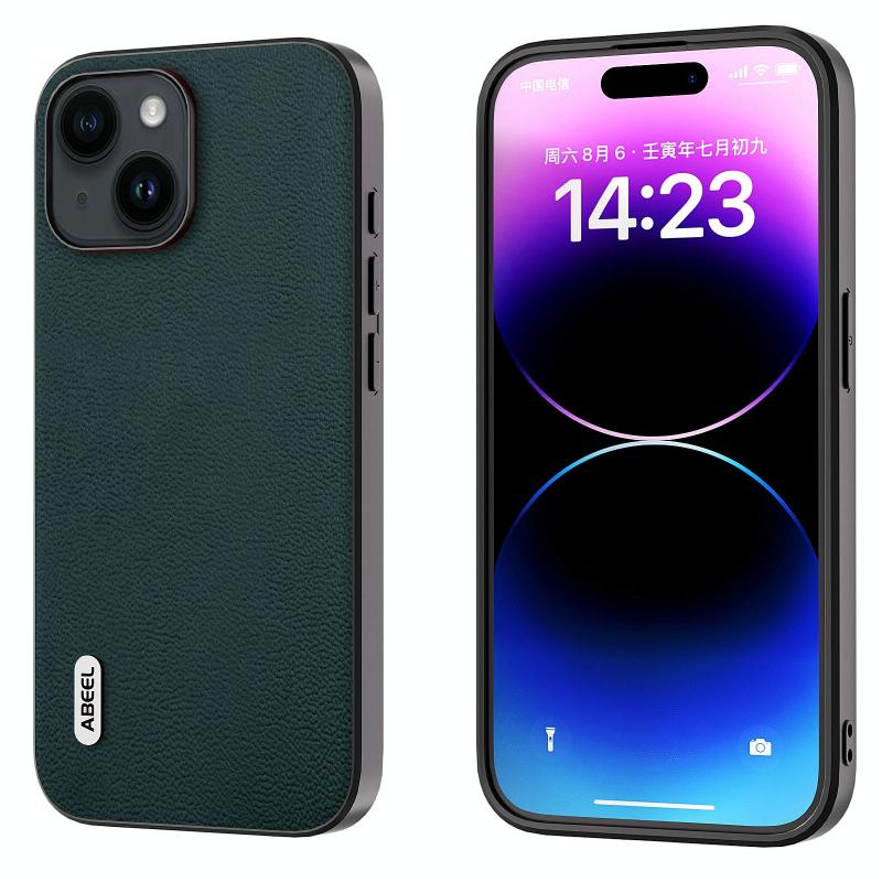 Για iPhone 14 Plus ABEEL Γνήσια Δερμάτινη Θήκη Luolai Series (Σκούρο Πράσινο)