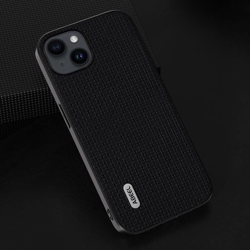 Θήκη τηλεφώνου πολυτελείας από γνήσιο δέρμα ABEEL για iPhone 14 Plus, μαύρο χρώμα με μαύρο περίγραμμα (Μαύρο)
