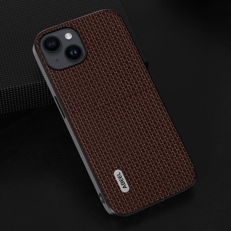 Θήκη τηλεφώνου πολυτελείας από γνήσιο δέρμα ABEEL για iPhone 14 Plus, μαύρο περίγραμμα (Καφέ)