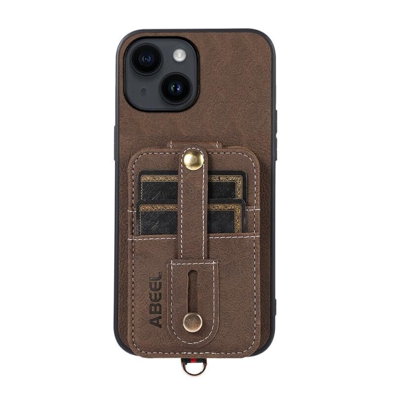 Θήκη τηλεφώνου για iPhone 14 Plus ABEEL με υφή δέρματος λυτσί, κάρτα και υλικό PU (Μαύρο)