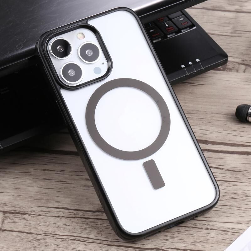 For iPhone 14 Plus Acrylic + TPU Magsafe Magnetic Phone Case (Black)