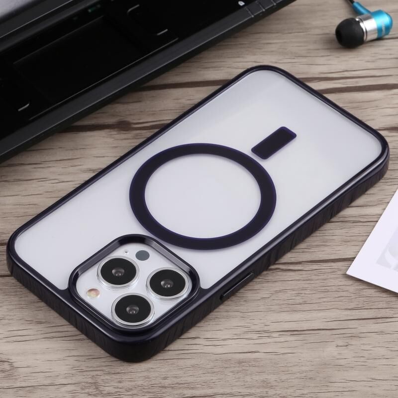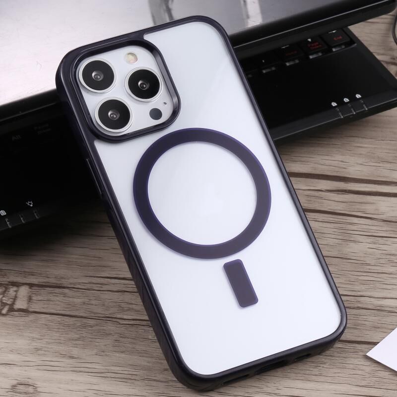 For iPhone 14 Plus Acrylic + TPU Magsafe Magnetic Phone Case (Dark Blue)