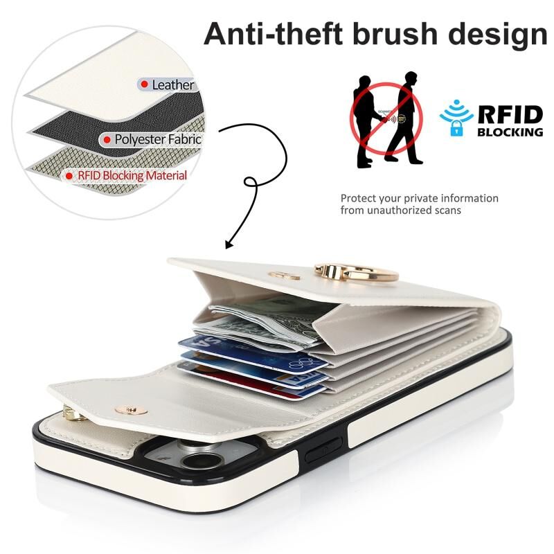 Θήκη τηλεφώνου κατά της κλοπής με υποδοχή καρτών RFID για iPhone 14 Plus (Μπεζ)