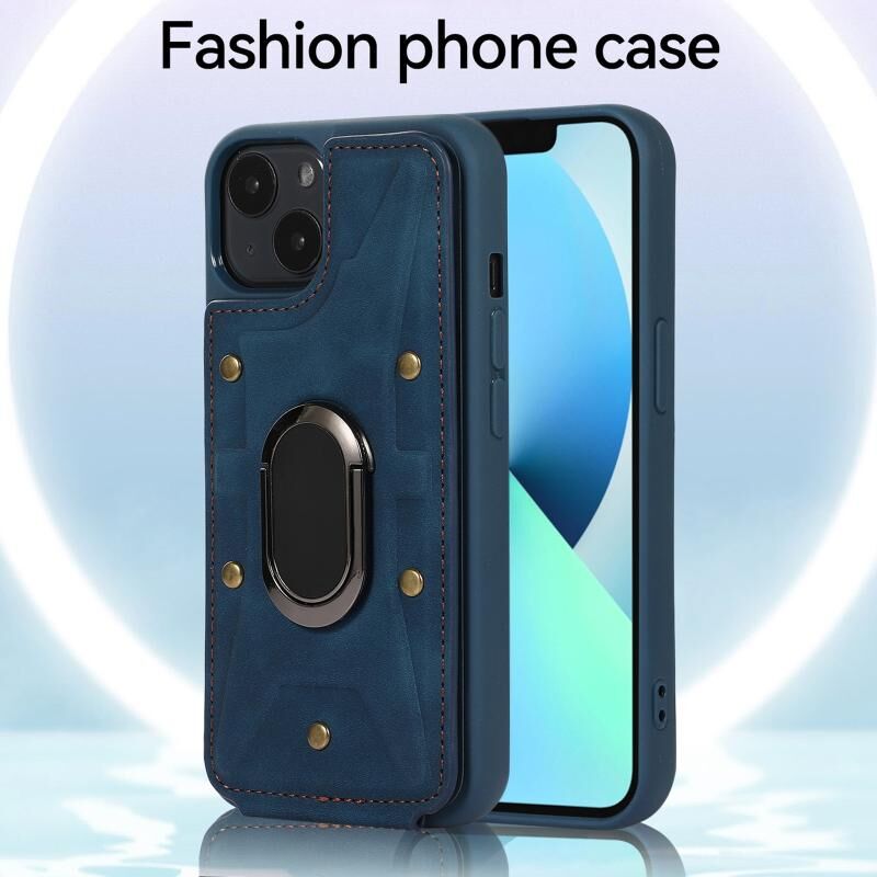 For iPhone 14 Plus Armor Ring Wallet Back Cover Phone Case(Blue)