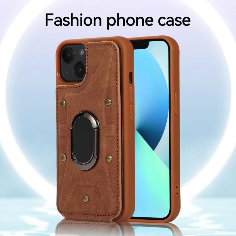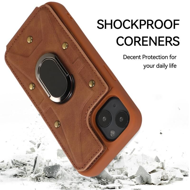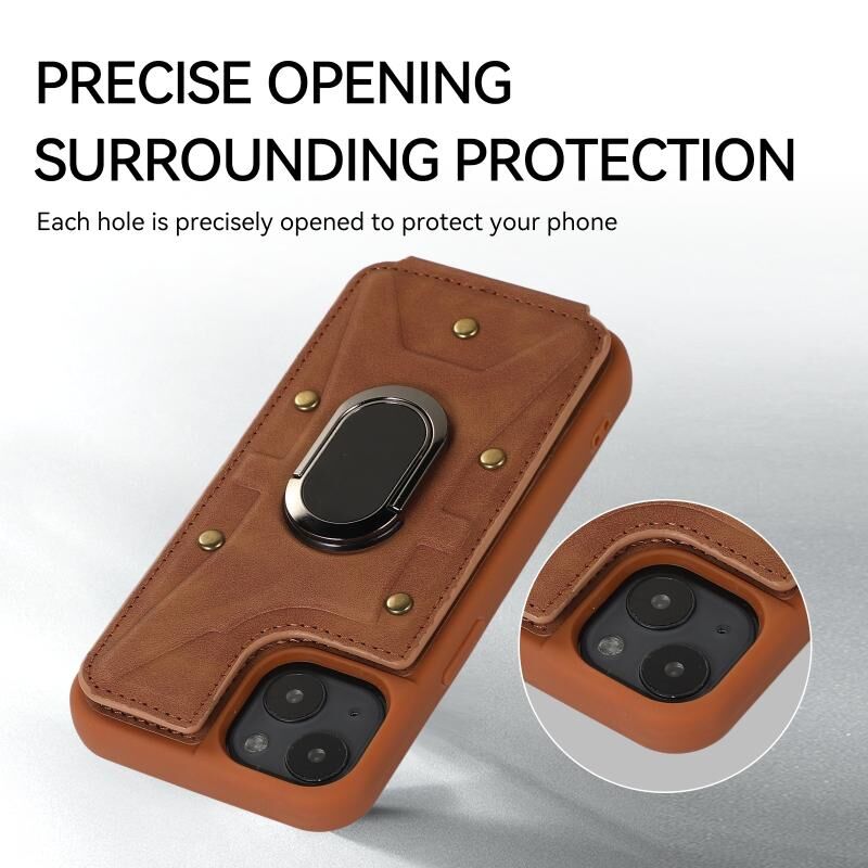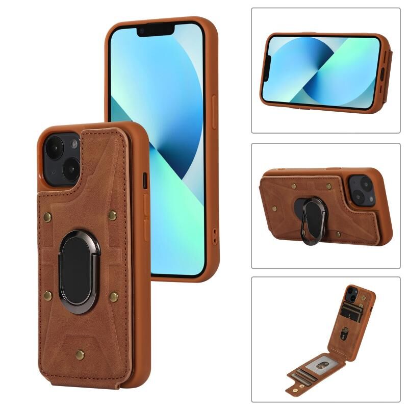 For iPhone 14 Plus Armor Ring Wallet Back Cover Phone Case(Brown)