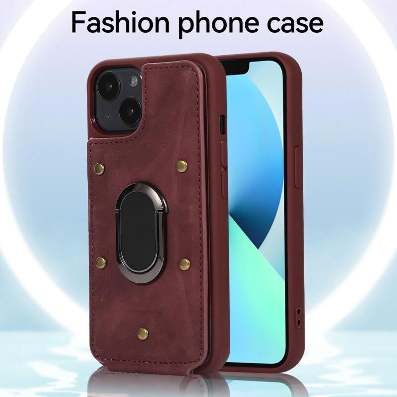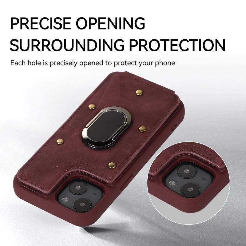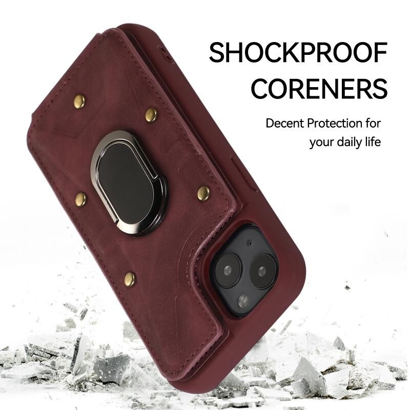 For iPhone 14 Plus Armor Ring Wallet Back Cover Phone Case(Wine Red)