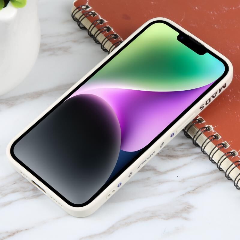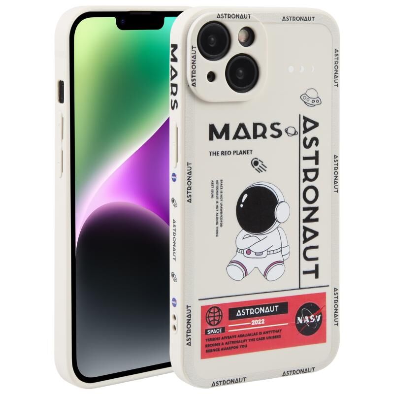 Θήκη τηλεφώνου για iPhone 14 Plus με σχέδιο αστροναύτη, σιλικόνης, ευθείας άκρης (Αστροναύτης Άρη - Λευκό)