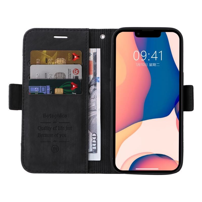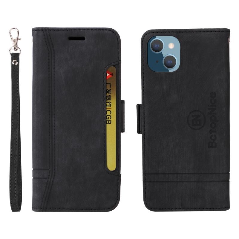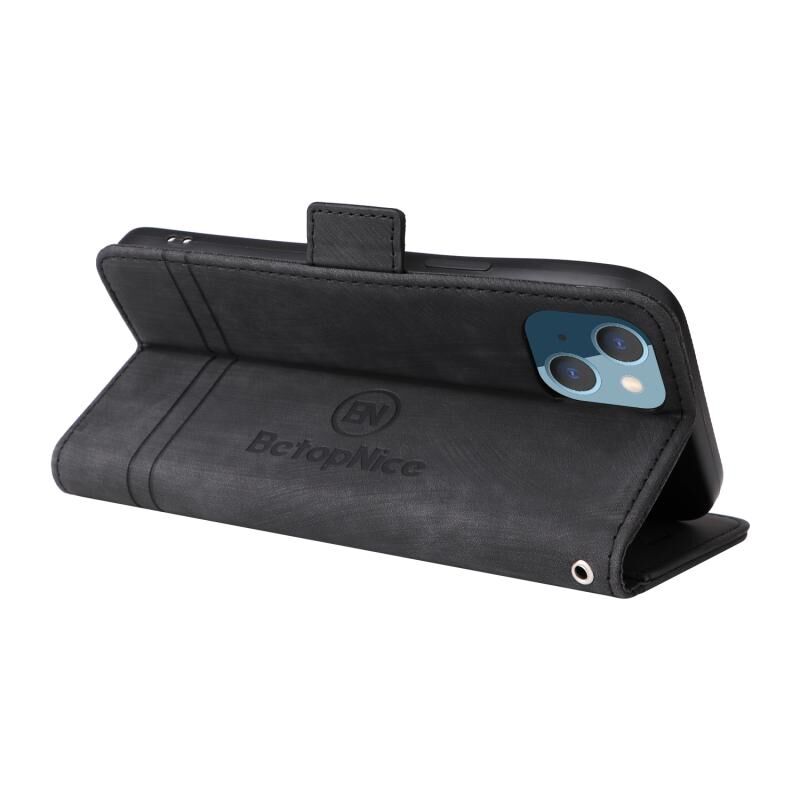 Θήκη τηλεφώνου από δέρμα με διπλή αγκράφα BETOPNICE για iPhone 14 Plus (Μαύρο) (BETOPNICE)