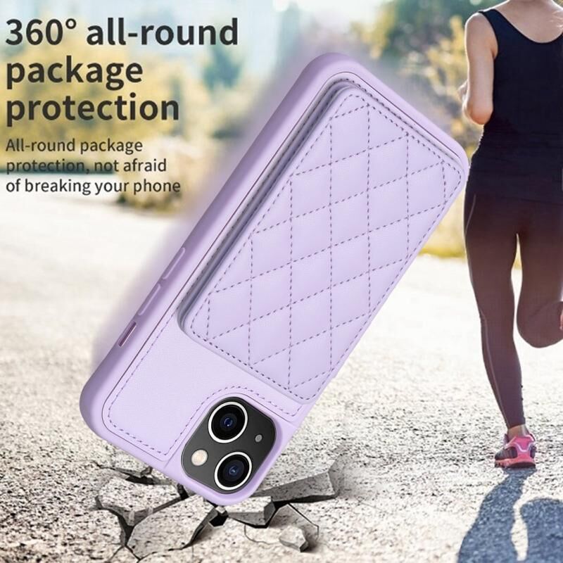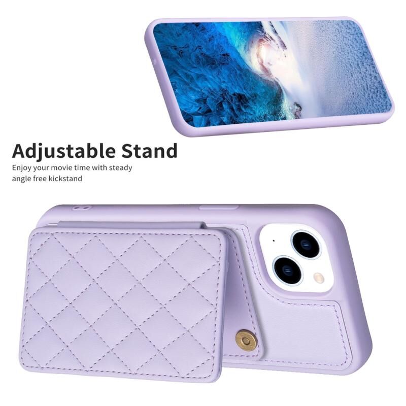 Θήκη τηλεφώνου για iPhone 14 Plus BF25 με σχέδιο καρό και θήκη για κάρτες (Σκούρο Μωβ)