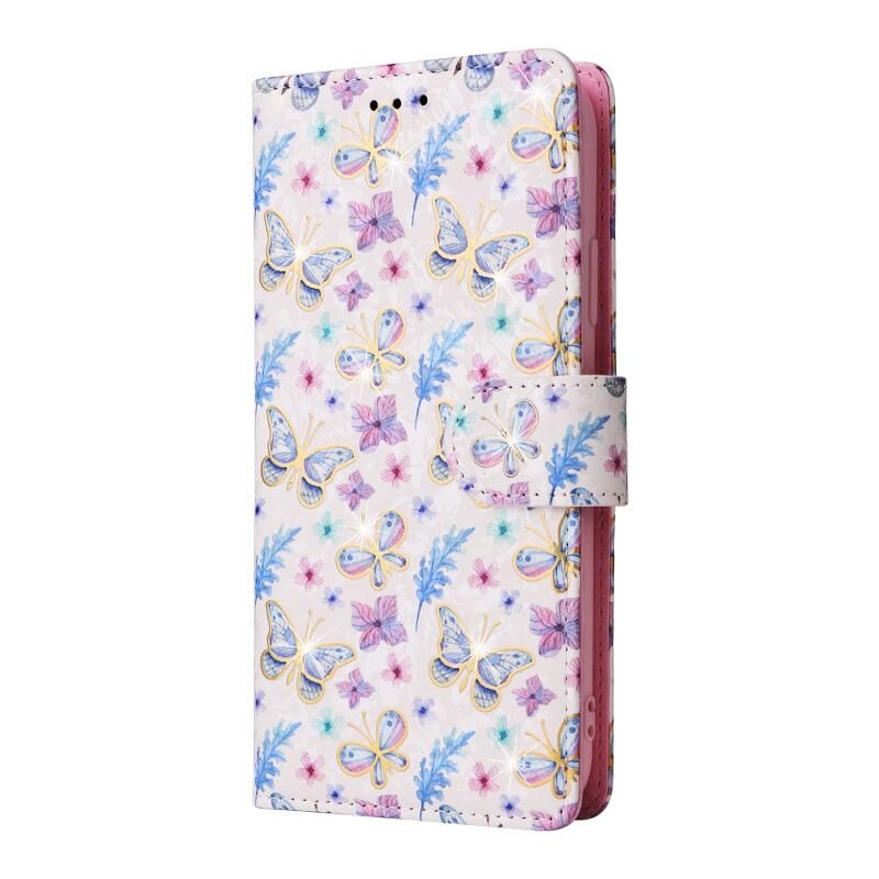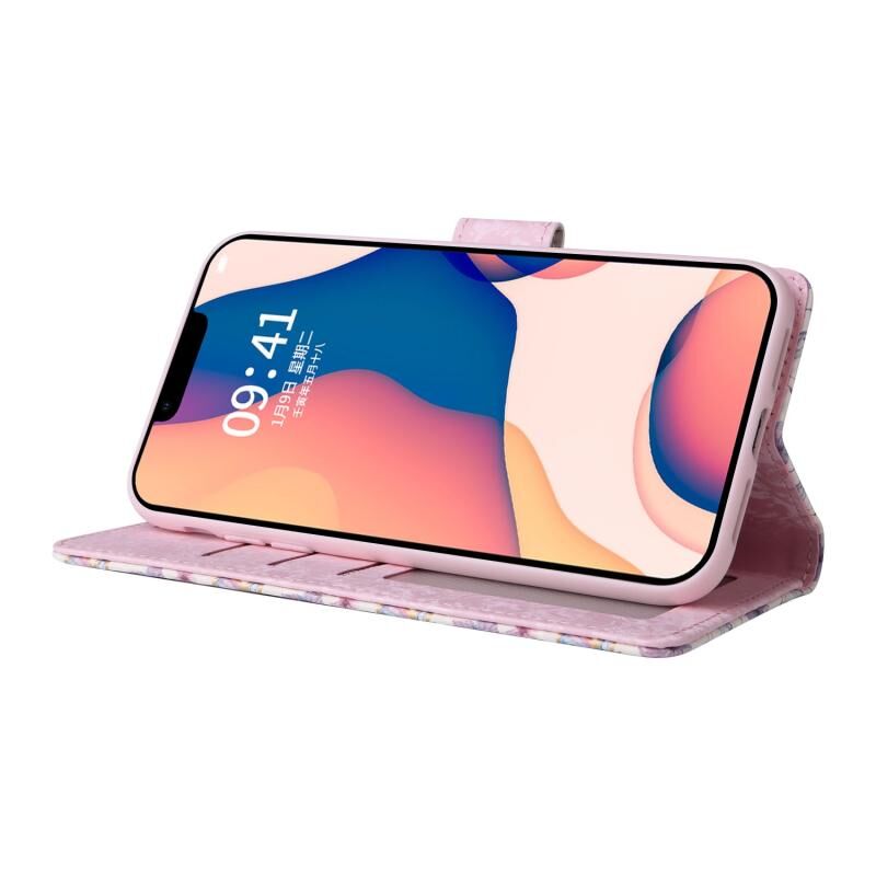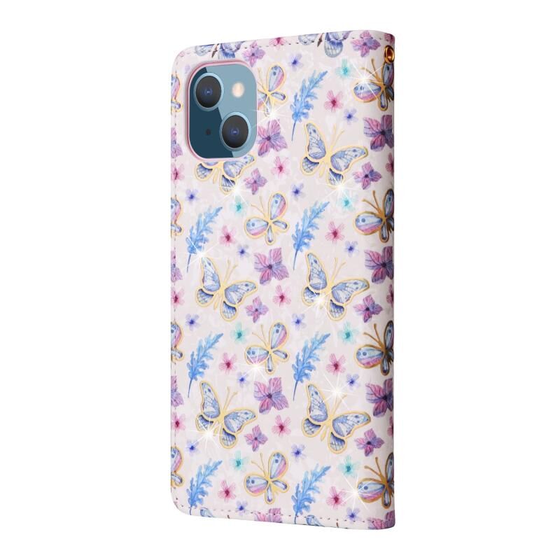 Θήκη δερμάτινη με σχέδιο μπρονζέ βαφής και τεχνολογία RFID για iPhone 14 Plus (Βιολέτες)