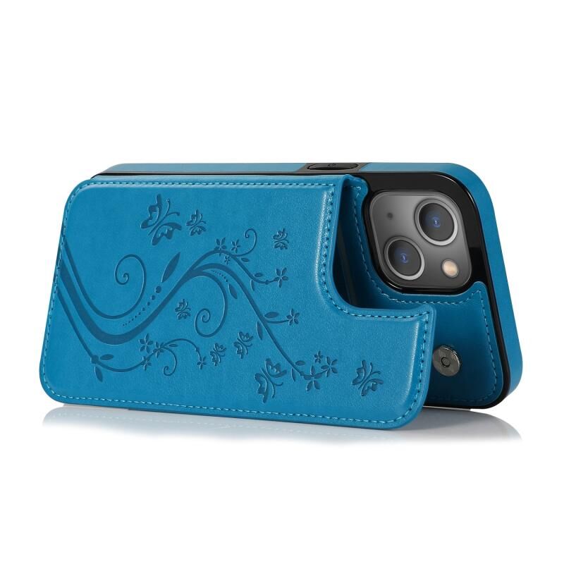 Θήκη για iPhone 14 Plus με Πεταλούδες, Λουλούδια και Διπλή Αγκράφα (Μαύρο)