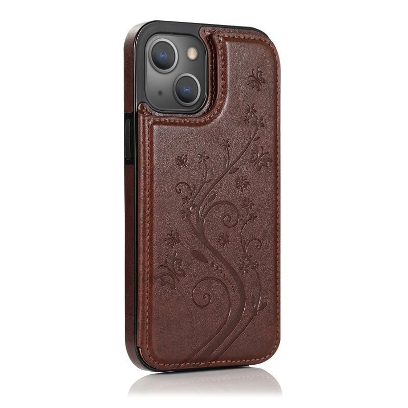 Θήκη για iPhone 14 Plus με Πεταλούδες, Λουλούδια και Διπλή Αγκράφα (Μαύρο)