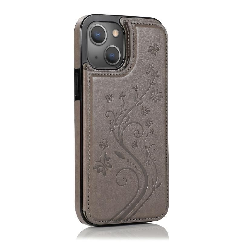 Θήκη για iPhone 14 Plus με Πεταλούδες, Λουλούδια και Διπλή Αγκράφα (Μαύρο)