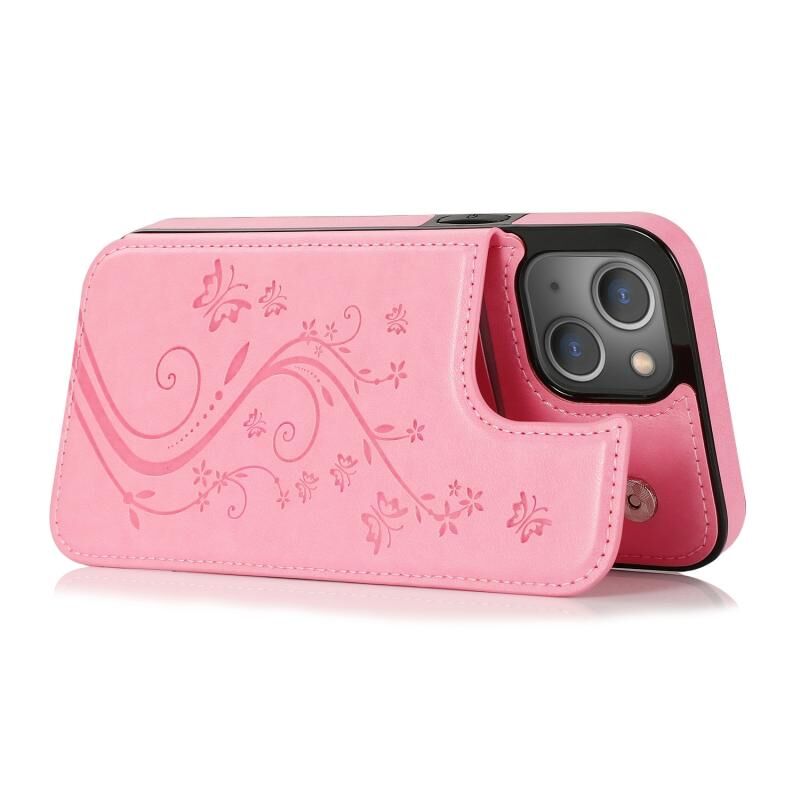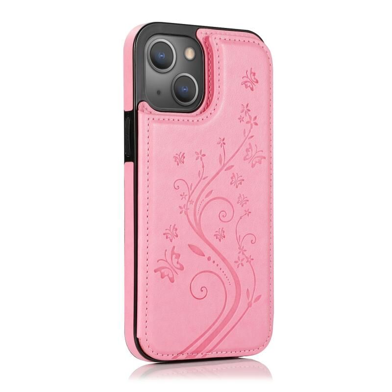 Θήκη για iPhone 14 Plus με Πεταλούδες, Λουλούδια και Διπλή Αγκράφα (Μαύρο)