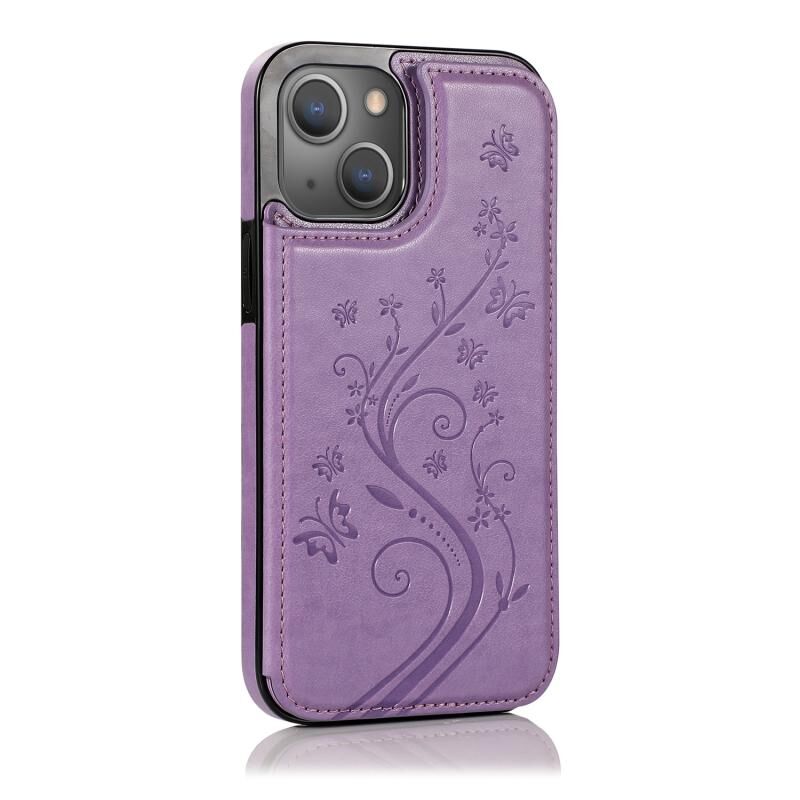 Θήκη για iPhone 14 Plus με Πεταλούδες, Λουλούδια και Διπλή Αγκράφα (Μαύρο)