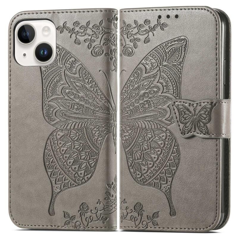 Θήκη δέρματος με ανάγλυφο σχέδιο πεταλούδας για iPhone 14 Plus (Ροζ)