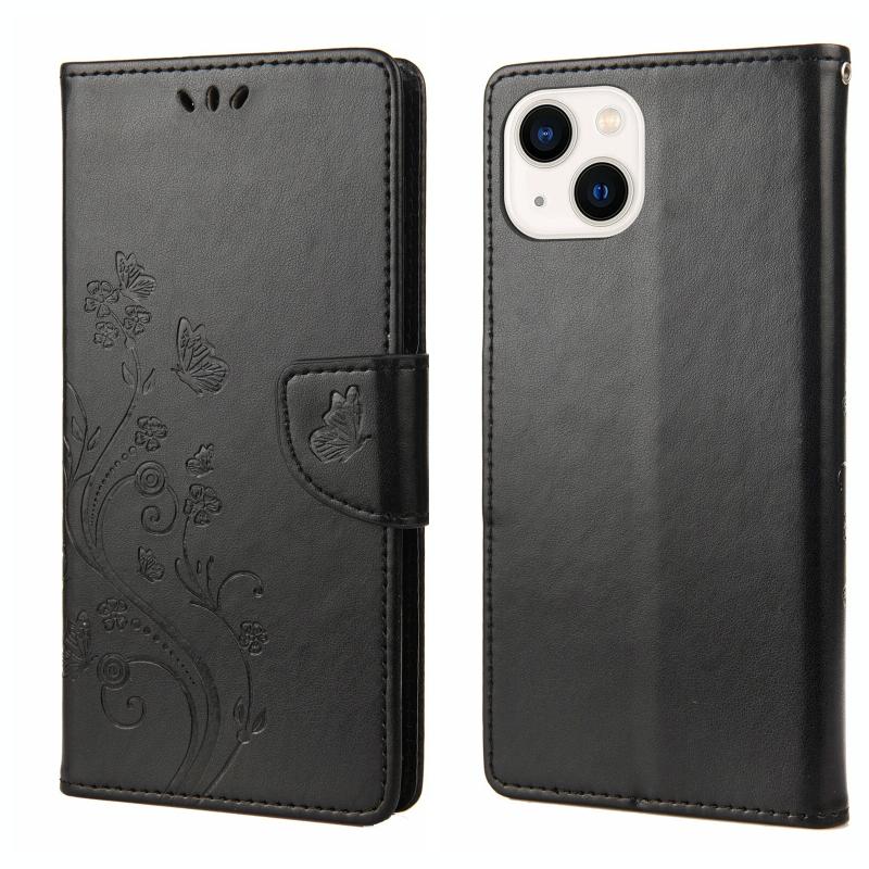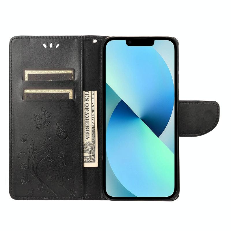 Θήκη τηλεφώνου από δέρμα με σχέδιο πεταλούδας και λουλουδιών για iPhone 14 Plus (Πράσινο)