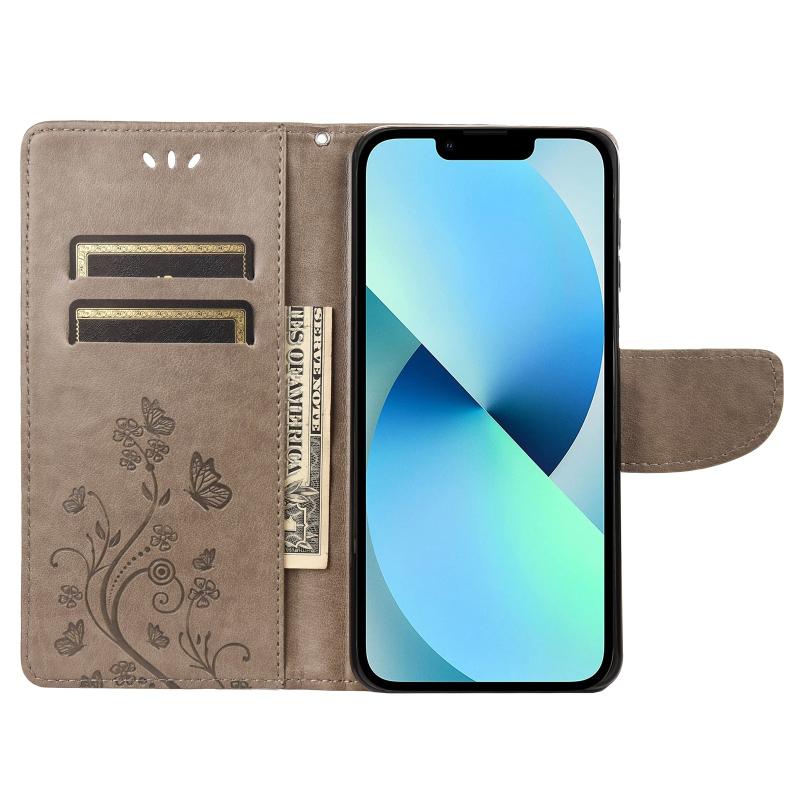 Θήκη τηλεφώνου από δέρμα με σχέδιο πεταλούδας και λουλουδιών για iPhone 14 Plus (Πράσινο)