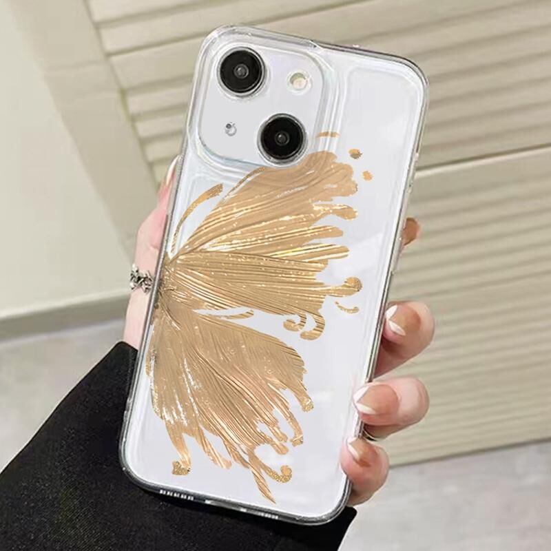 Θήκη τηλεφώνου για iPhone 14 Plus με διάφανη σιλικόνη TPU και σχέδιο πεταλούδας (Χρυσό)