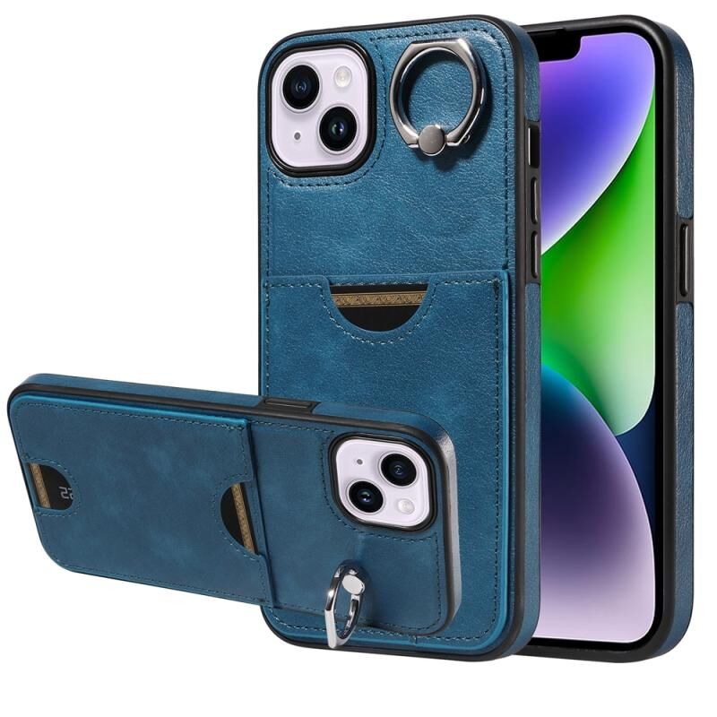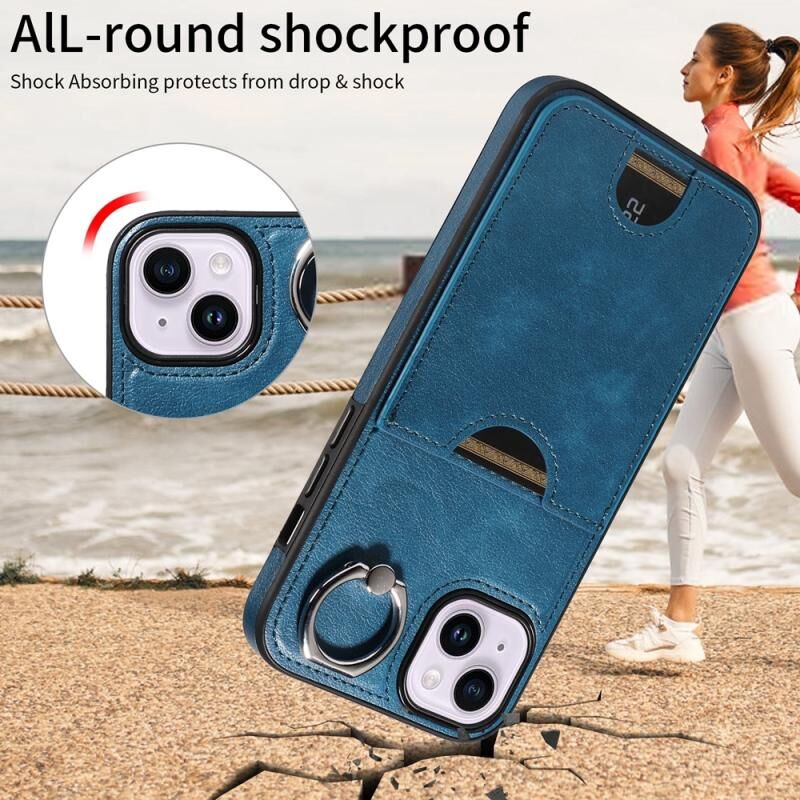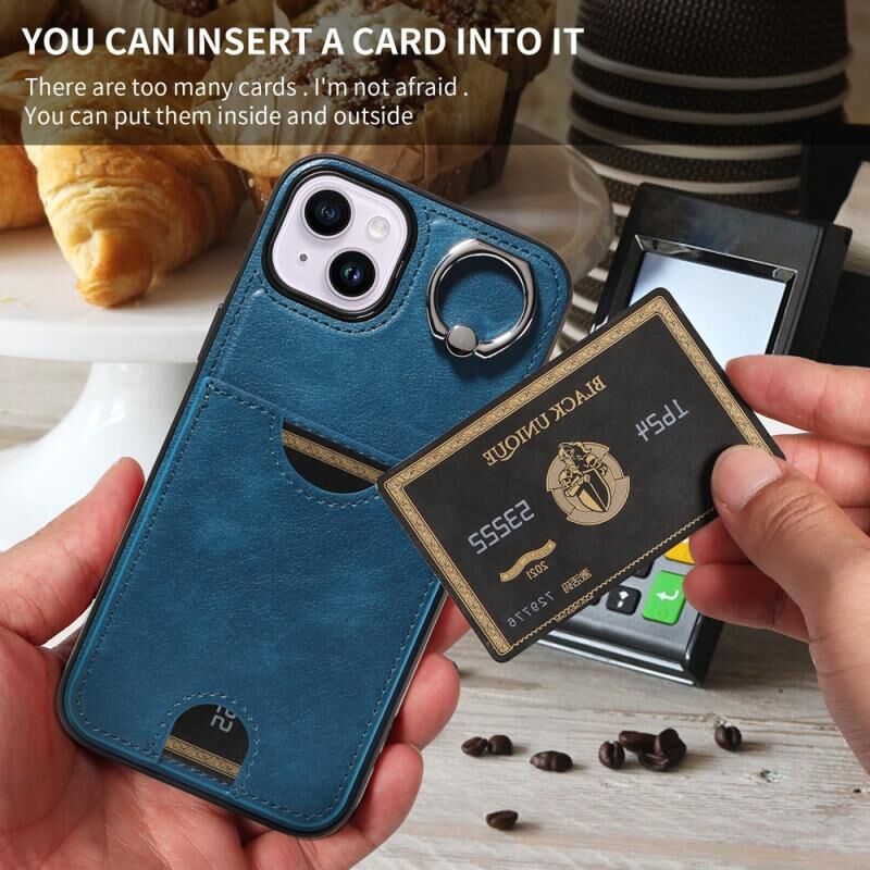 Θήκη τηλεφώνου για iPhone 14 Plus με υφή δέρματος μοσχαριού, θήκη κάρτας και δαχτυλίδι στήριξης (Κόκκινο)