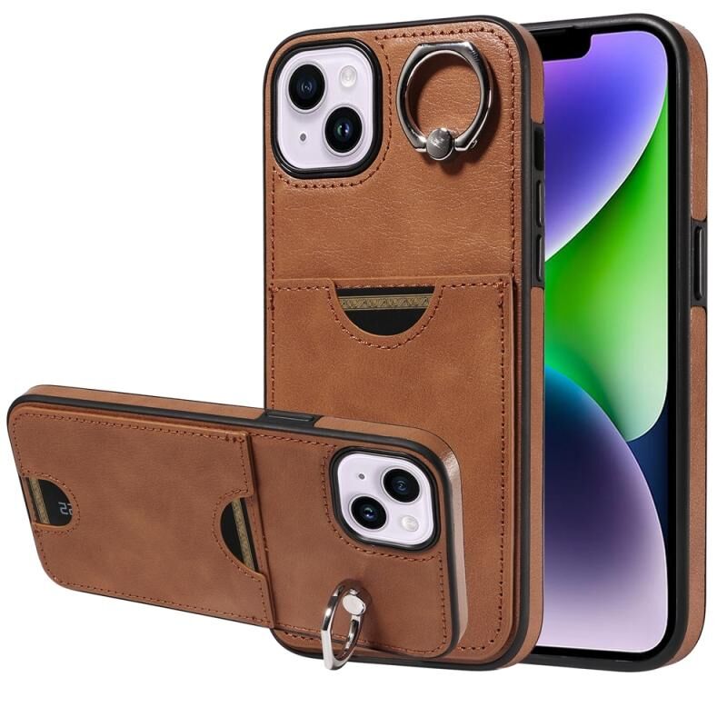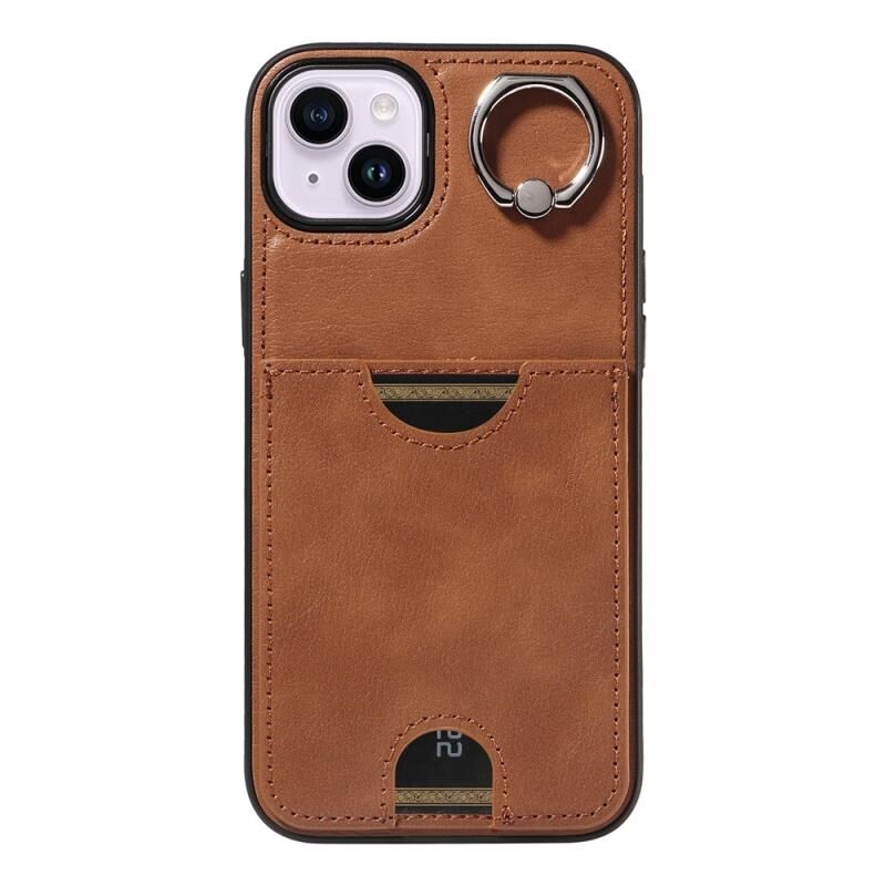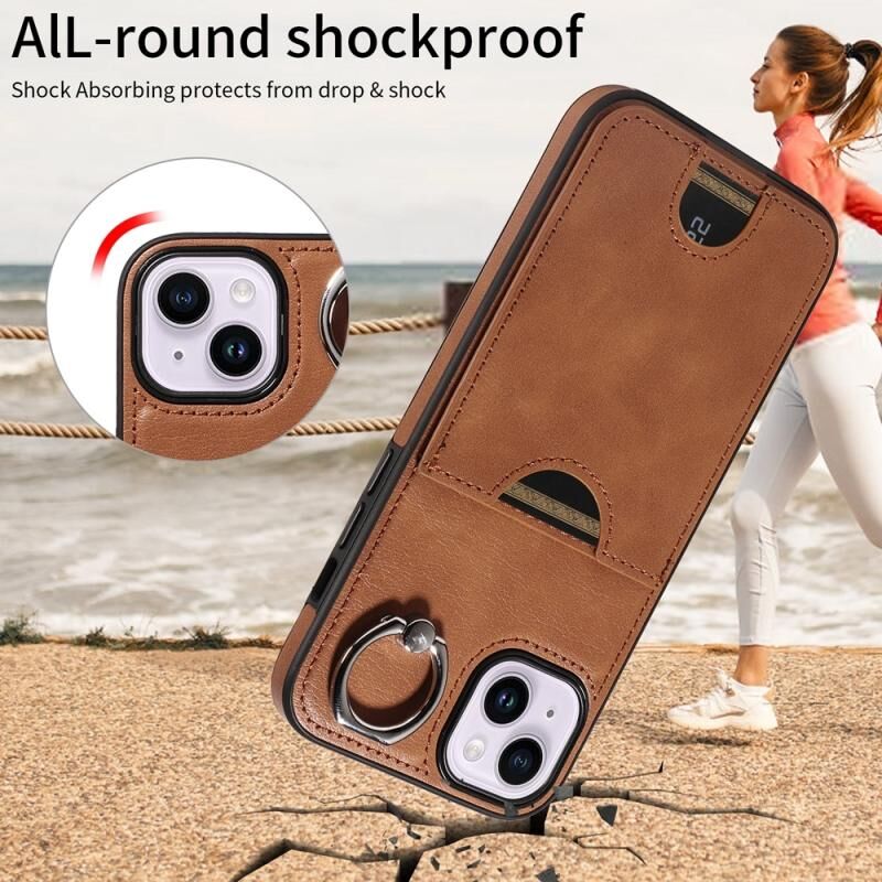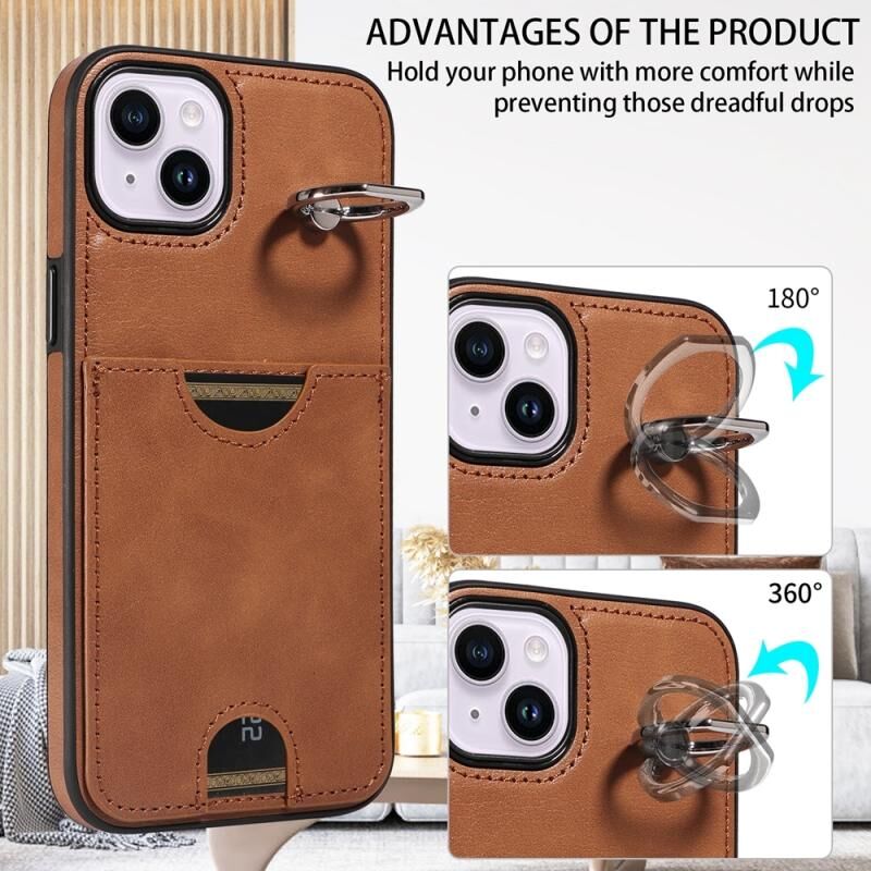 Θήκη τηλεφώνου για iPhone 14 Plus με υφή δέρματος μοσχαριού, θήκη κάρτας και δαχτυλίδι στήριξης (Κόκκινο)