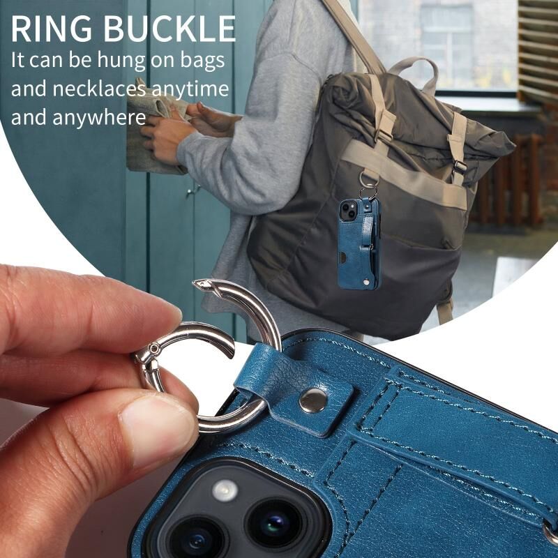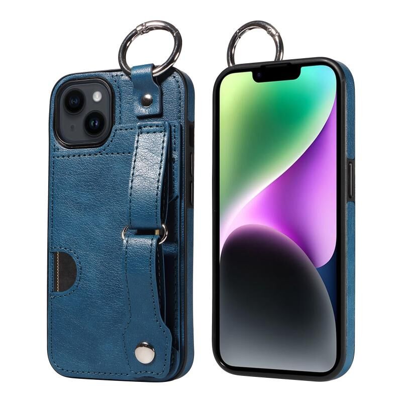Θήκη τηλεφώνου για iPhone 14 Plus με υφή μοσχαρίσιου δέρματος, θήκη καρπού με υποδοχή κάρτας και δακτύλιο (Καφέ)