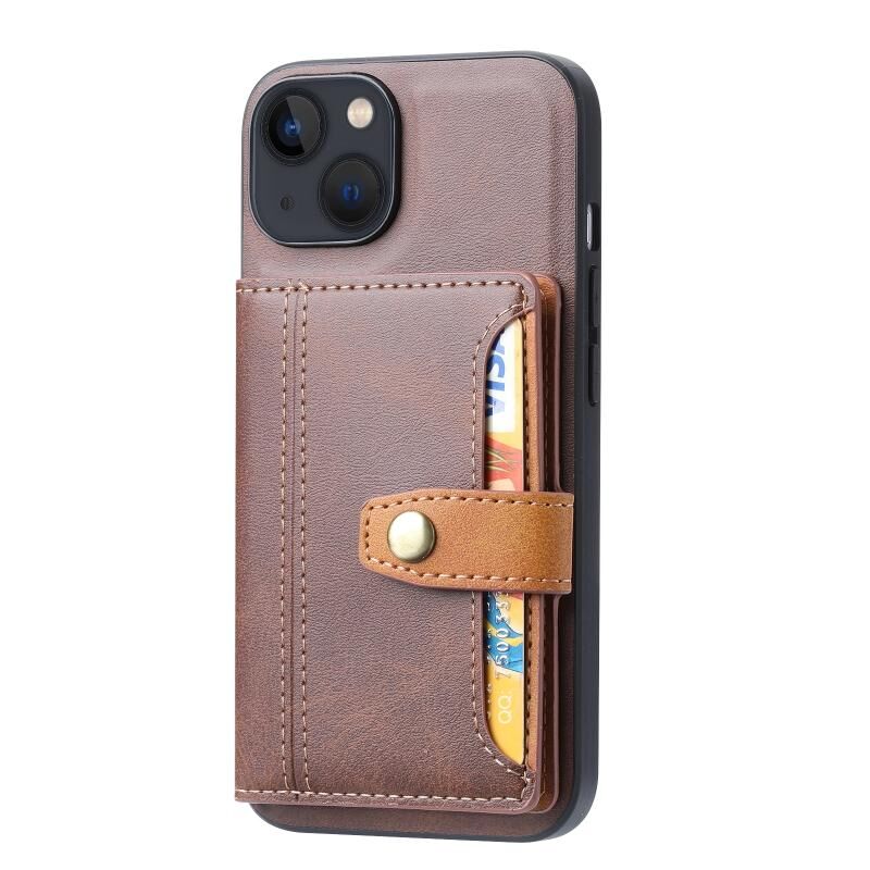 Θήκη κινητού τηλεφώνου για iPhone 14 Plus από δέρμα μοσχαριού με θήκη για κάρτες, TPU + PU (Κόκκινο)
