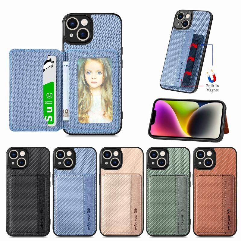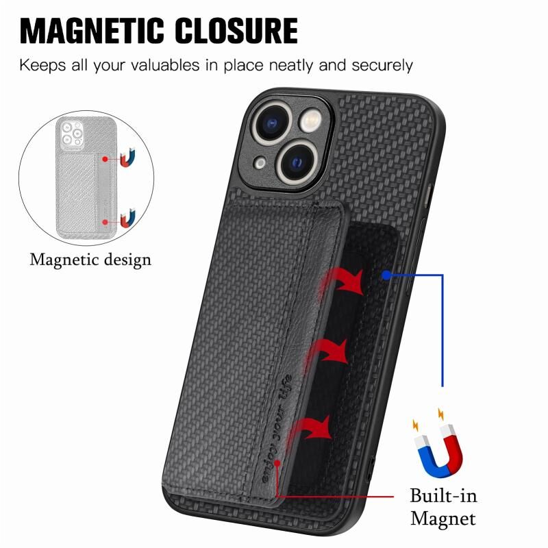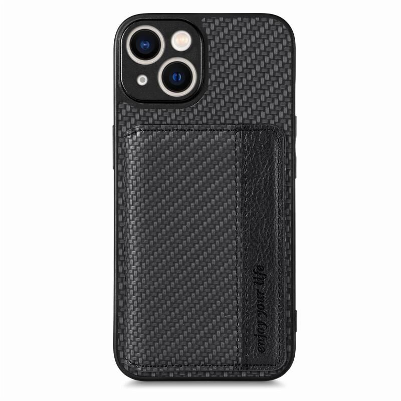 Θήκη τηλεφώνου με μαγνητική τσέπη για κάρτες από ανθρακονήματα για iPhone 14 Plus (Μαύρο)