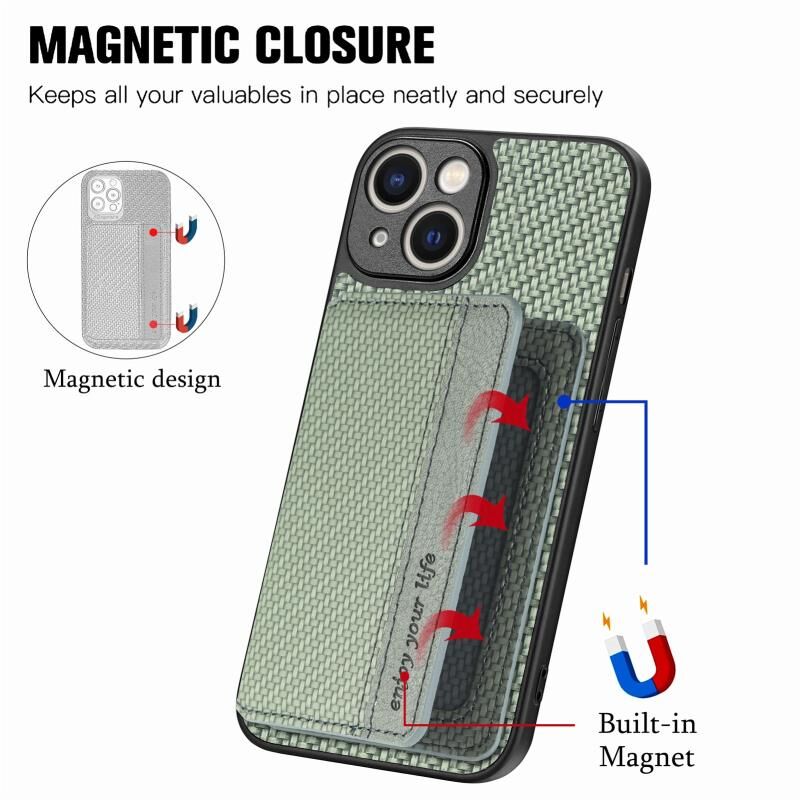 Θήκη τηλεφώνου με μαγνητική τσέπη για κάρτες από ανθρακονήματα για iPhone 14 Plus (Μαύρο)