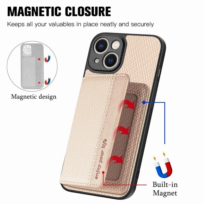 Θήκη τηλεφώνου με μαγνητική τσέπη για κάρτες από ανθρακονήματα για iPhone 14 Plus (Μαύρο)