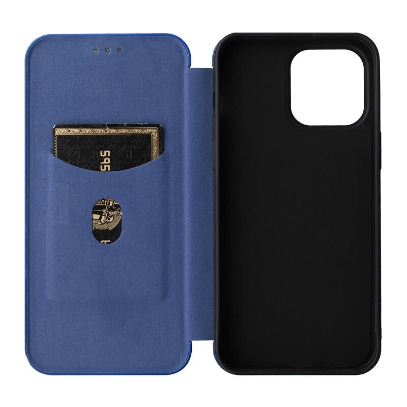 For iPhone 14 Plus Carbon Fiber Texture Flip Leather Phone Case (Blue)