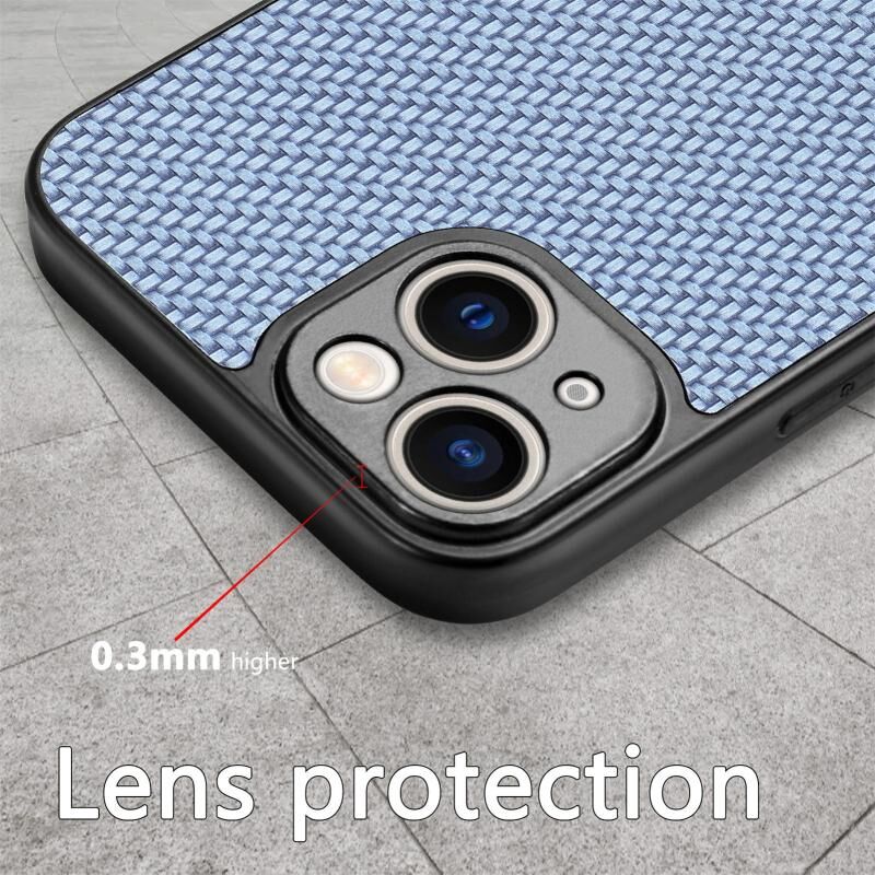 Θήκη κινητού τηλεφώνου για iPhone 14 Plus με υφή ανθρακονήματος και δερμάτινη πλάτη (Μαύρο)