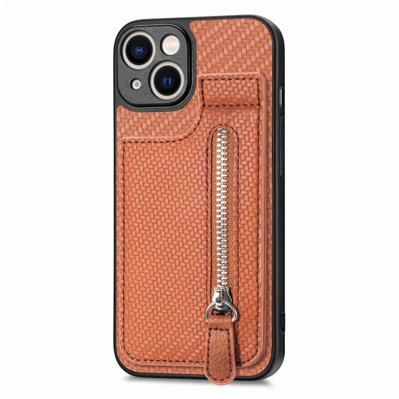 Θήκη τηλεφώνου κάθετης αναδίπλωσης με φερμουάρ από ανθρακονήματα για iPhone 14 Plus (Μαύρο)
