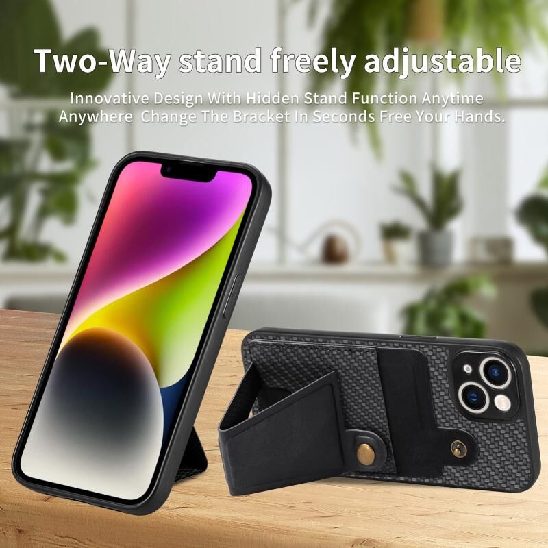 Θήκη κινητού τηλεφώνου για iPhone 14 Plus από ανθρακονήματα, τύπου πορτοφολιού, με κάρτες και σχήμα K (Μαύρο)